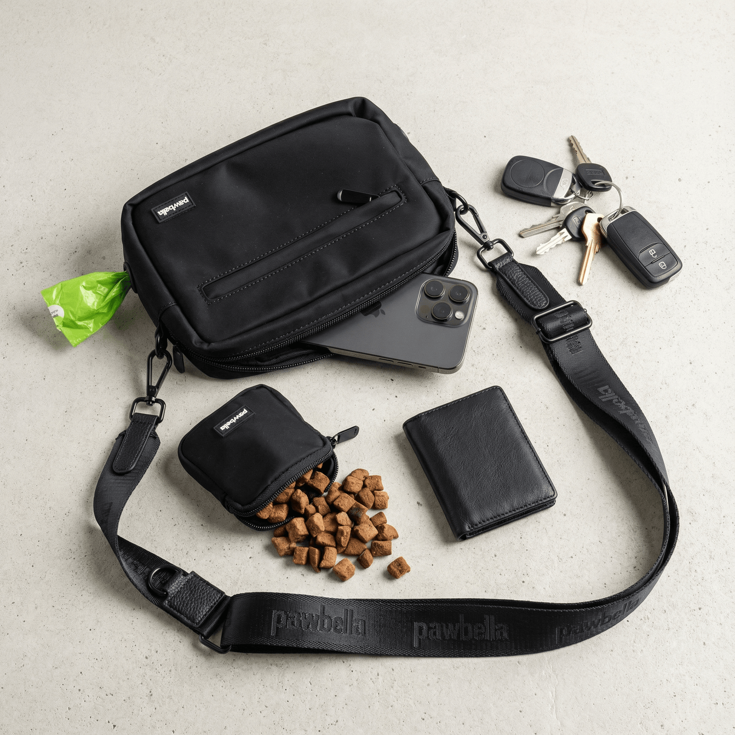 The bag is made from water-resistant nylon, so it handles light rain and splashes easily. While you can't go swimming with it, it will keep your phone and essentials dry during a drizzly Melbourne walk. Plus, the material is "wipe-clean," so muddy paw prints come right off.