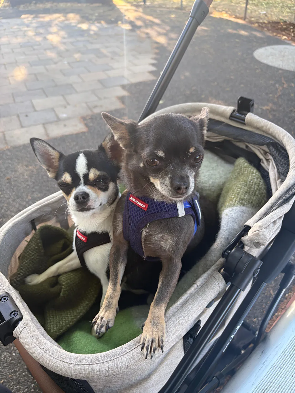 I use this for my 2 x Chihuahuas, as I get far too anxious walking them on a lead (other dogs) and they don’t like the lead anyway. I’ve only used the stroller 4 times and now when I get the stroller out, they stand by it waiting to be put in LOL